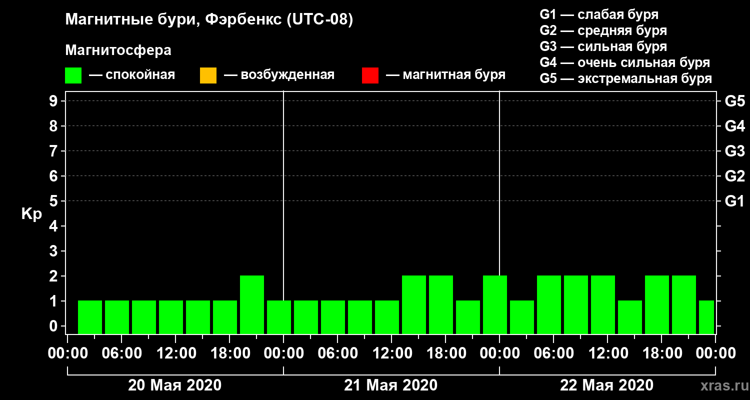 Магнитные бури в Фэрбенксе 22 мая 2020 года
