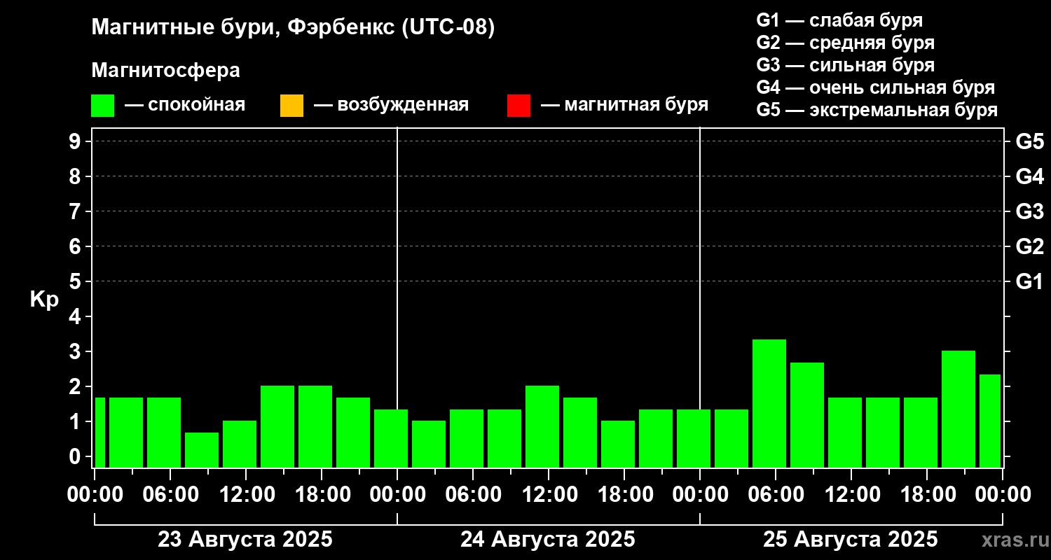 Магнитные бури в Фэрбенксе 25 августа 2025 года