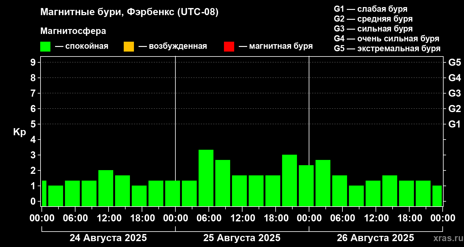 Магнитные бури в Фэрбенксе 26 августа 2025 года