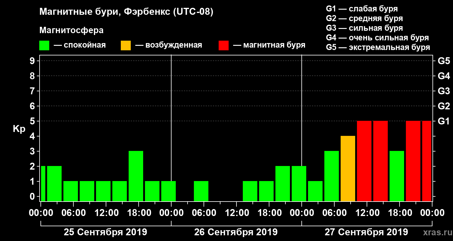 Магнитные бури в Фэрбенксе 27 сентября 2019 года