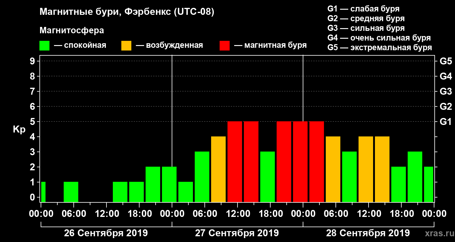 Магнитные бури в Фэрбенксе 28 сентября 2019 года