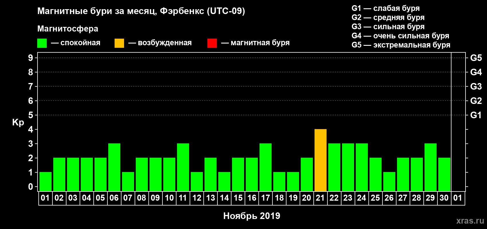 Магнитные бури в Фэрбенксе — 30 ноября 2019 года