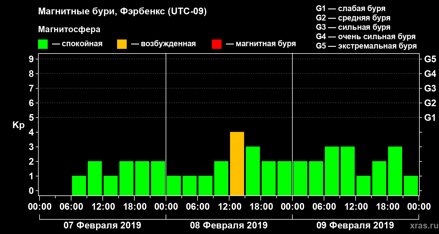 Магнитные бури в Фэрбенксе 9 февраля 2019 года