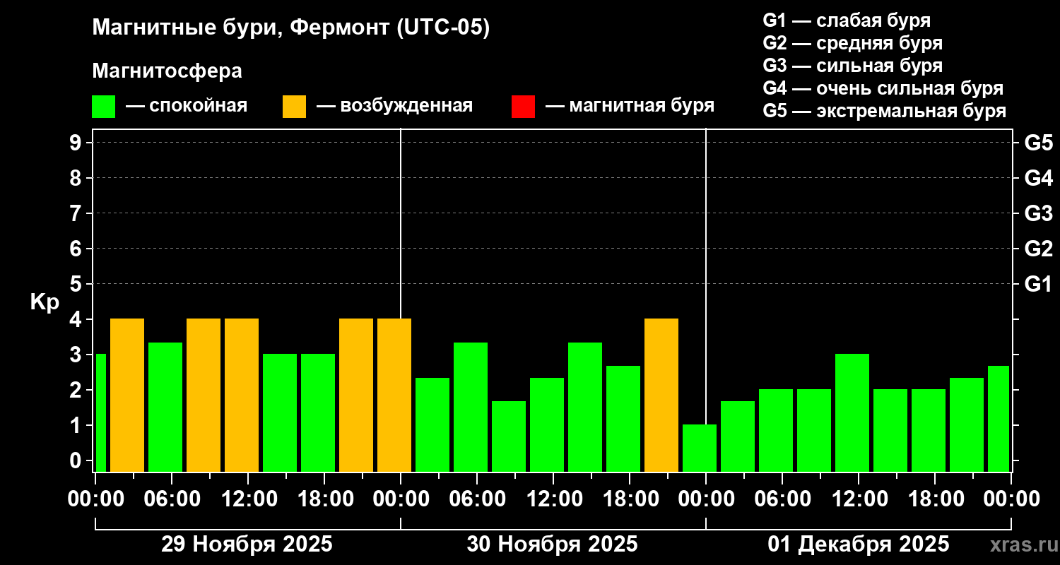 Магнитные бури в Фермонте 1 декабря 2025 года
