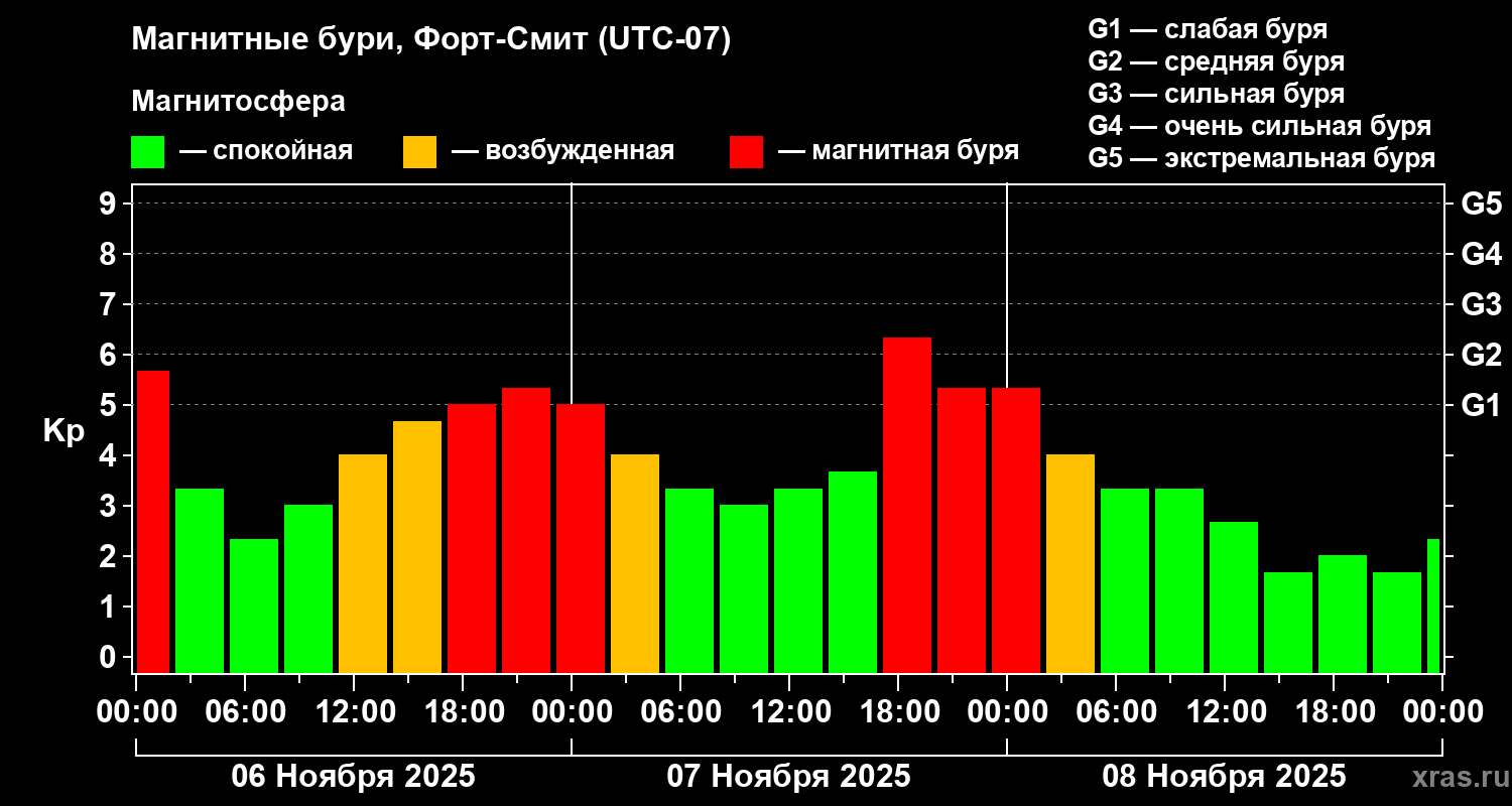 Магнитные бури в Форт-Смите 8 ноября 2025 года