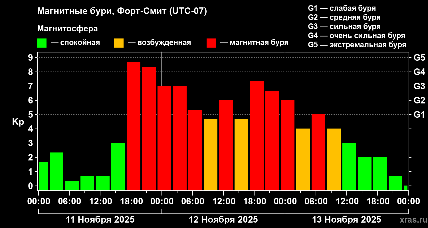 Магнитные бури в Форт-Смите 13 ноября 2025 года