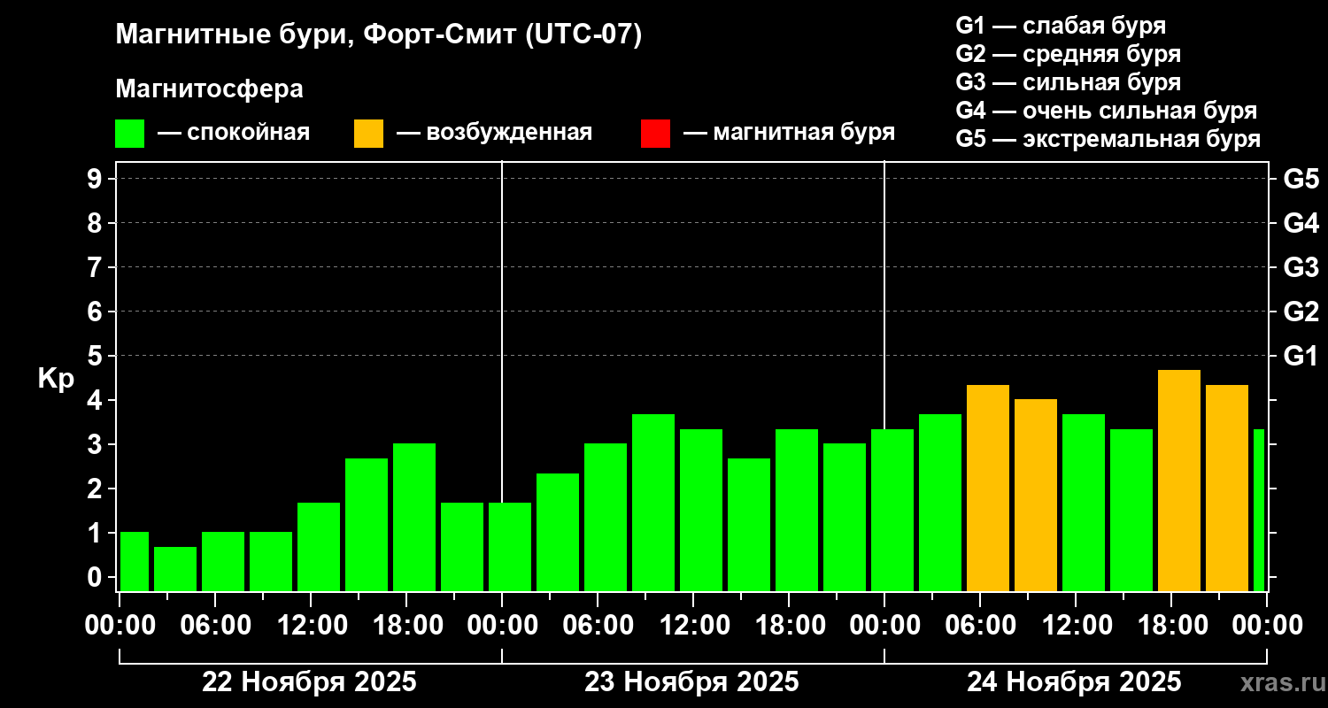 Магнитные бури в Форт-Смите — 24 ноября 2025 года