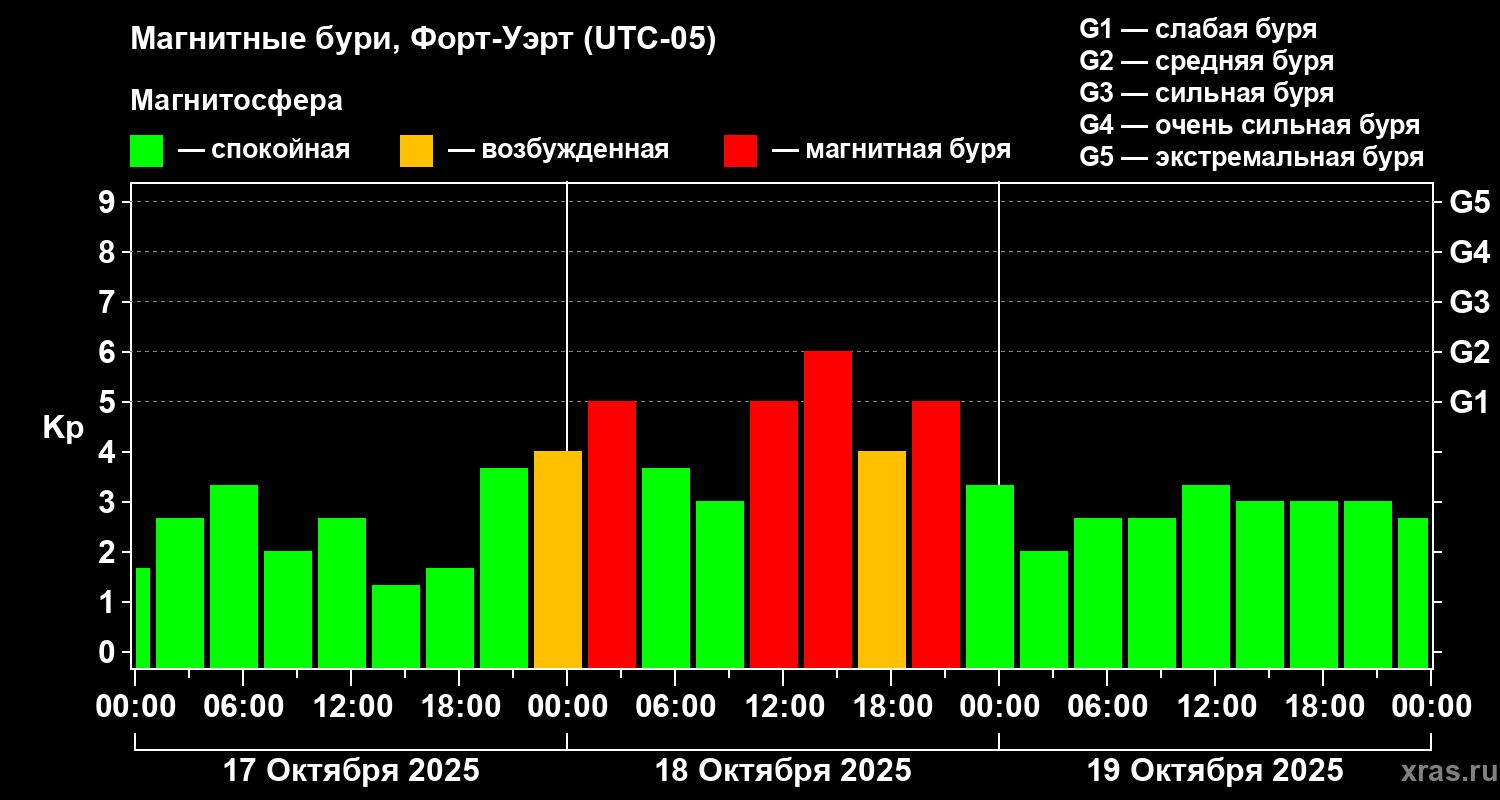 Магнитные бури в Форт-Уэрте 19 октября 2025 года