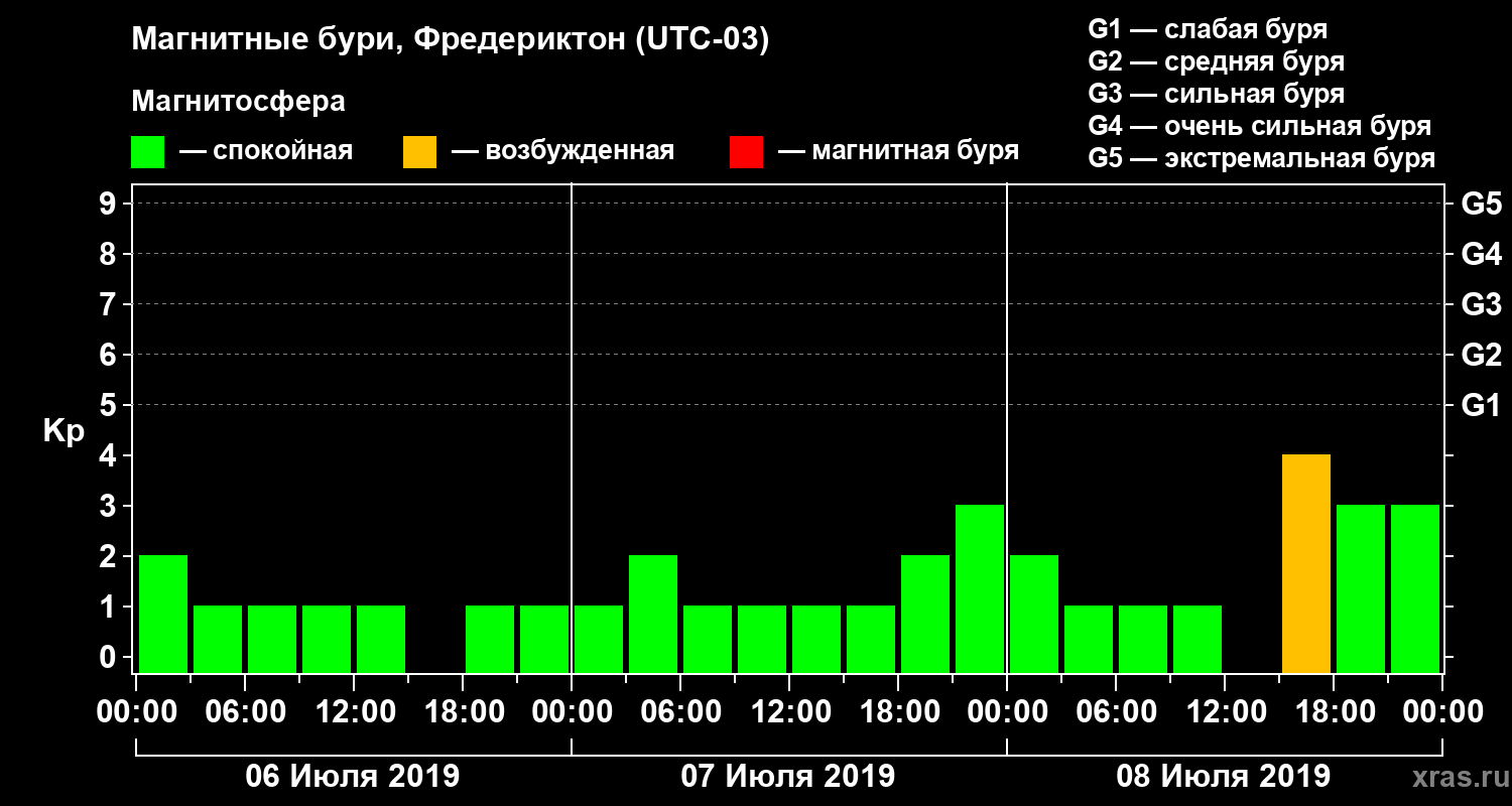 Магнитные бури в Фредериктоне 8 июля 2019 года