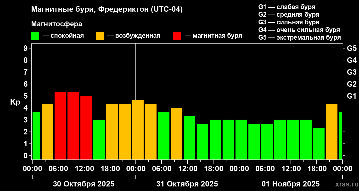 Магнитные бури в Фредериктоне 1 ноября 2025 года
