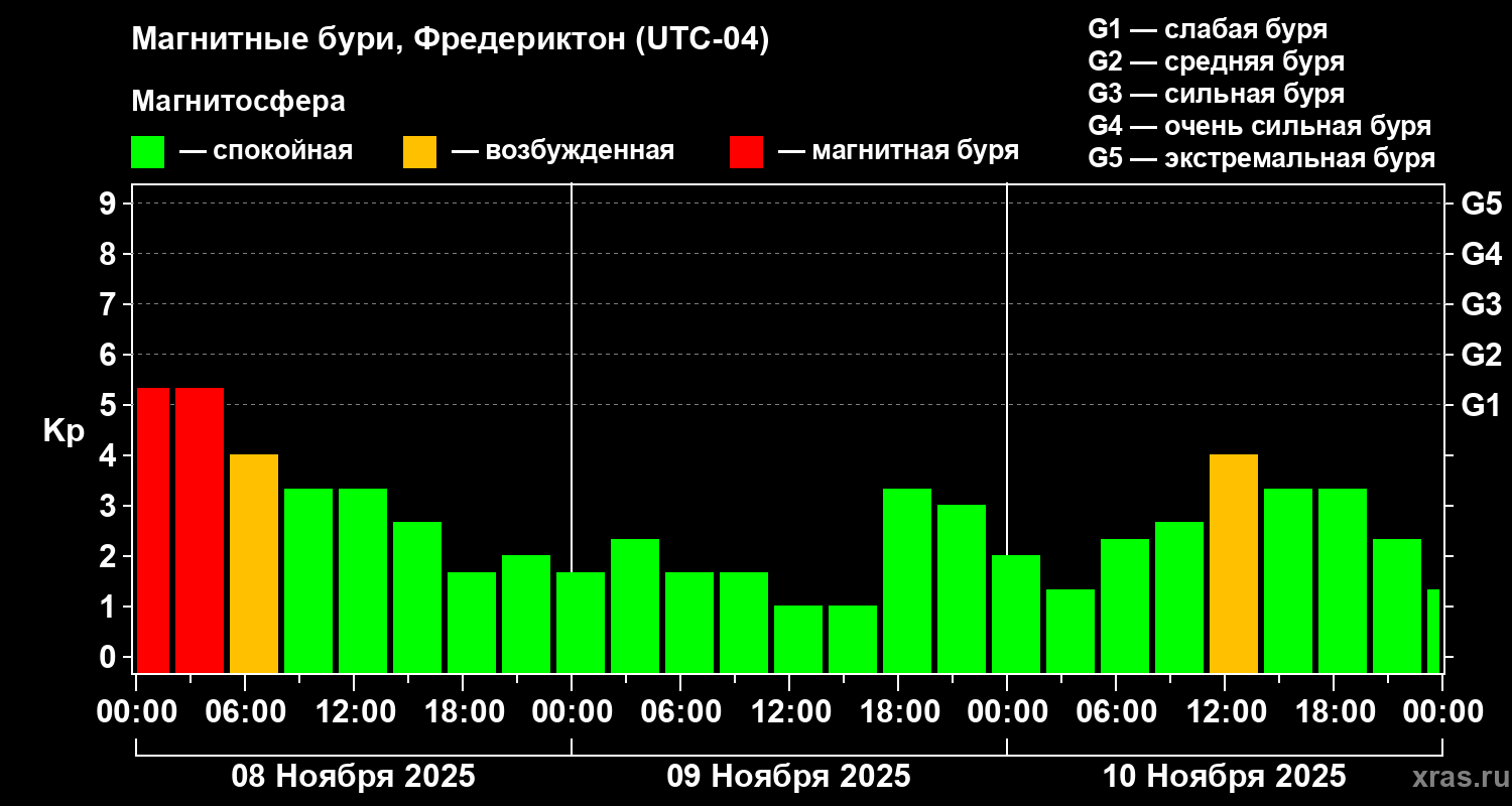 Магнитные бури в Фредериктоне 10 ноября 2025 года