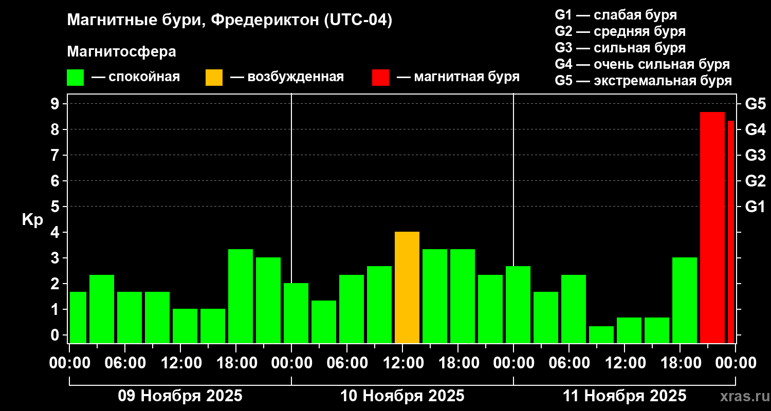 Магнитные бури в Фредериктоне 11 ноября 2025 года