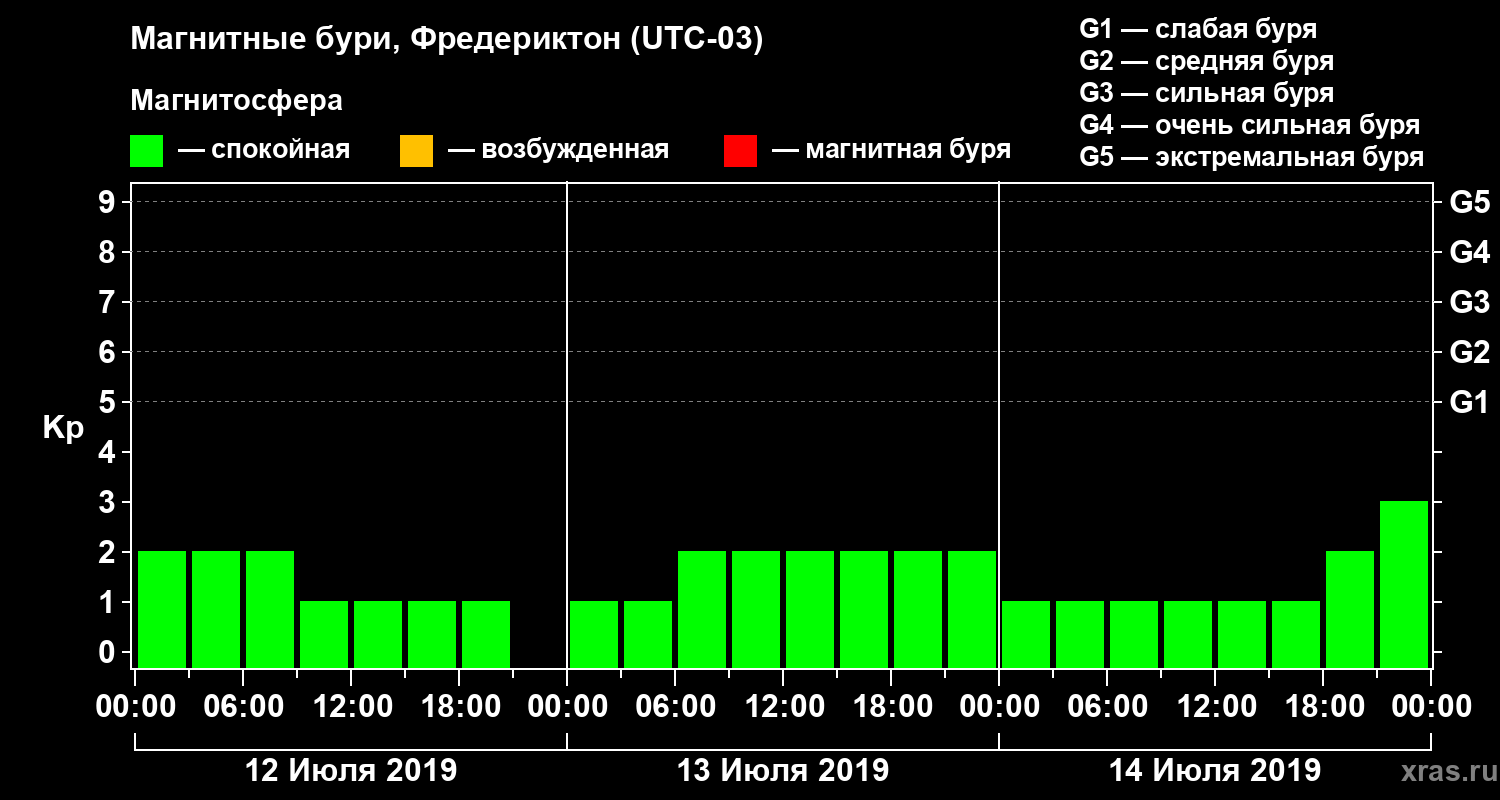 Магнитные бури в Фредериктоне — 14 июля 2019 года