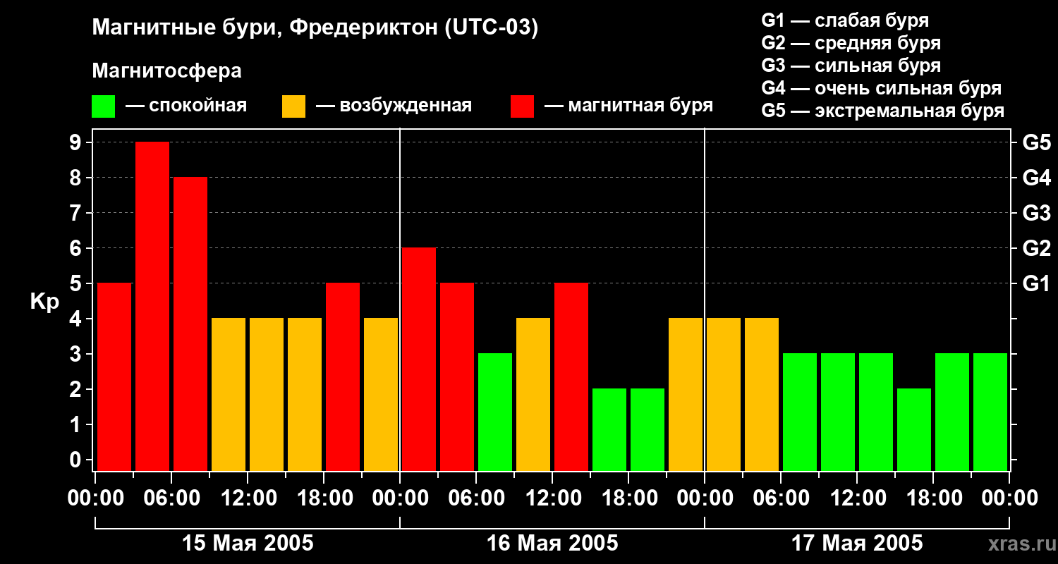 Магнитные бури в Фредериктоне — 17 мая 2005 года
