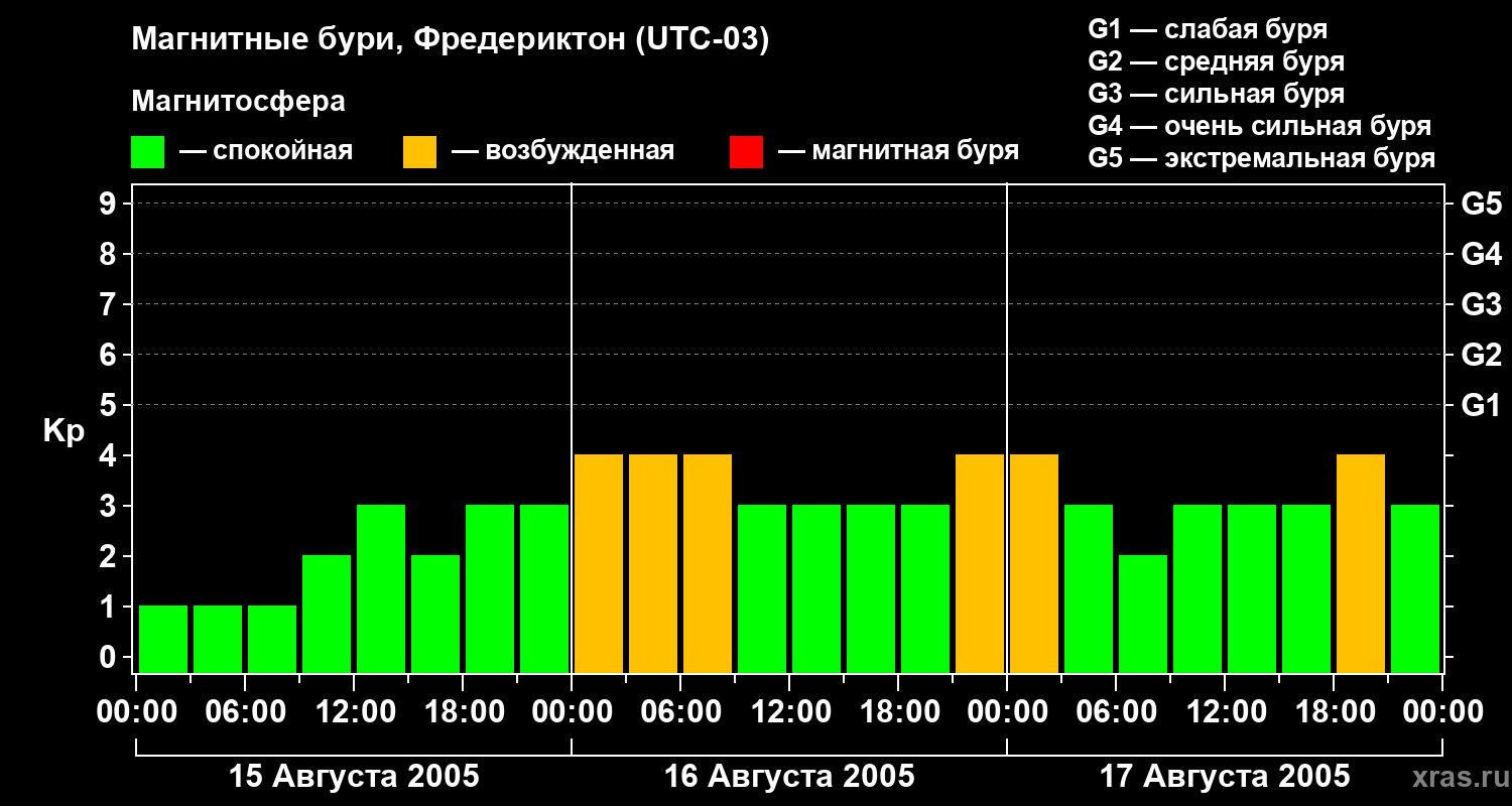 Магнитные бури в Фредериктоне 17 августа 2005 года