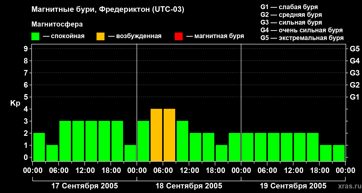 Магнитные бури в Фредериктоне 19 сентября 2005 года