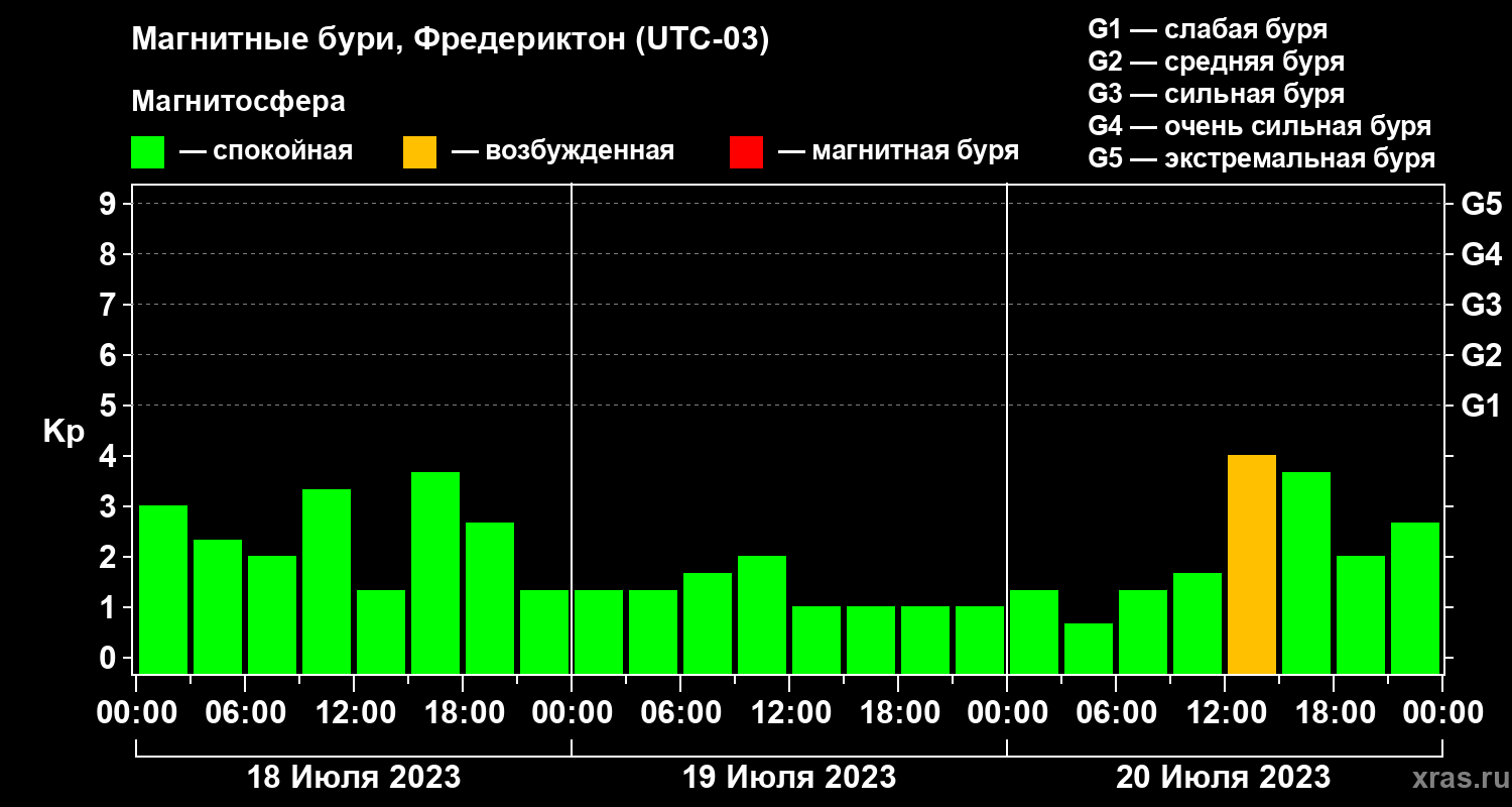 Магнитные бури в Фредериктоне 20 июля 2023 года