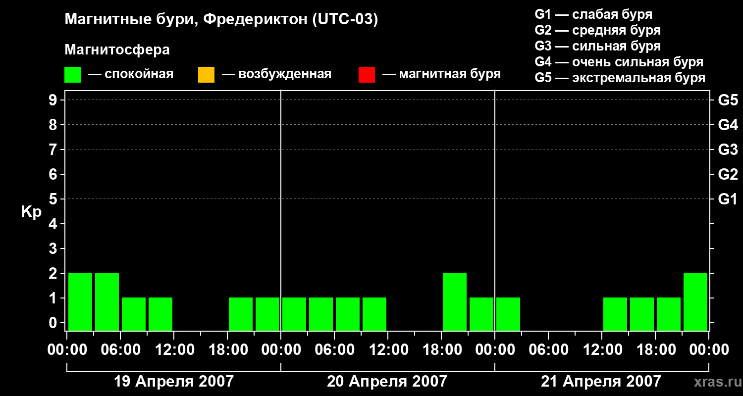 Магнитные бури в Фредериктоне 21 апреля 2007 года