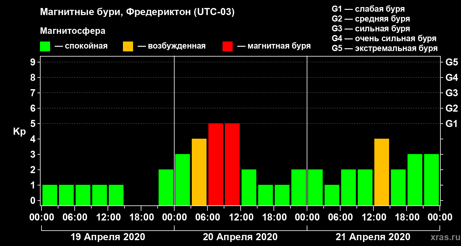 Магнитные бури в Фредериктоне — 21 апреля 2020 года