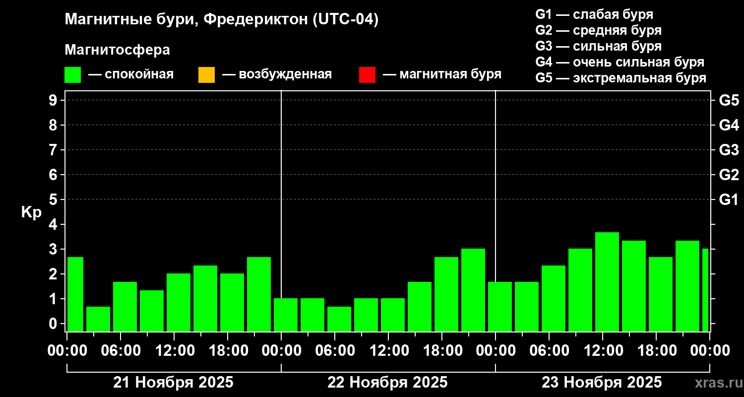 Магнитные бури в Фредериктоне 23 ноября 2025 года