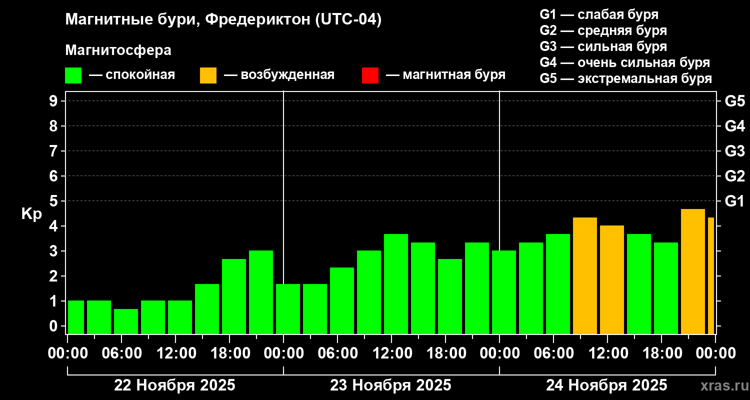 Магнитные бури в Фредериктоне 24 ноября 2025 года
