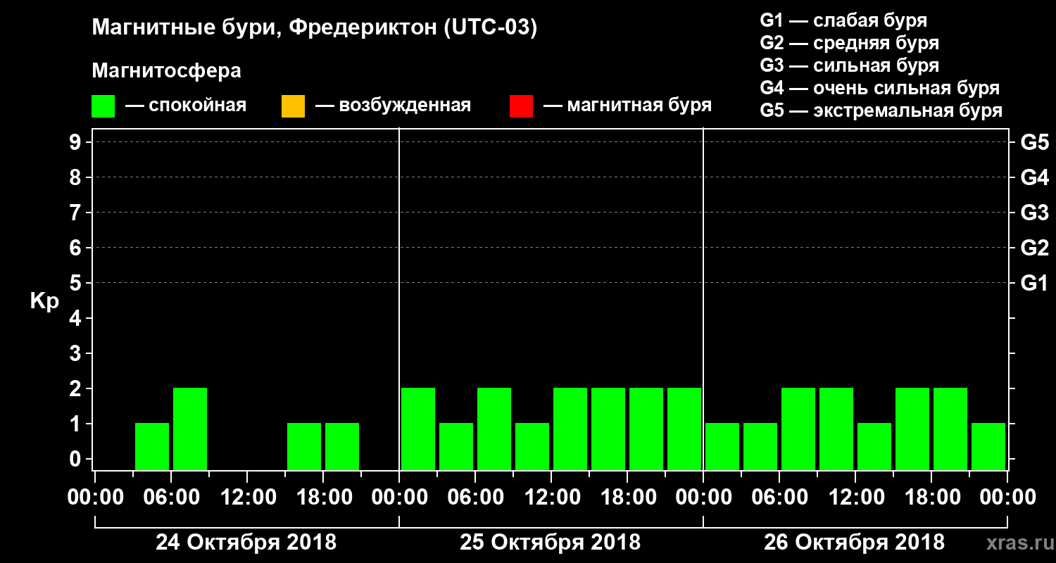 Магнитные бури в Фредериктоне 26 октября 2018 года