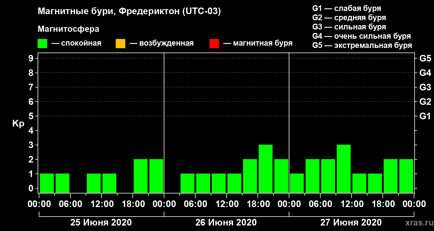 Магнитные бури в Фредериктоне 27 июня 2020 года