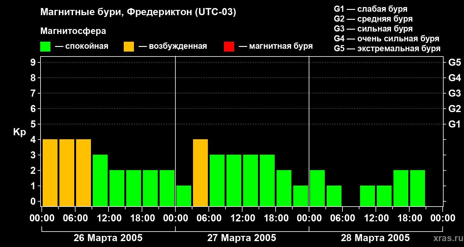 Магнитные бури в Фредериктоне — 28 марта 2005 года
