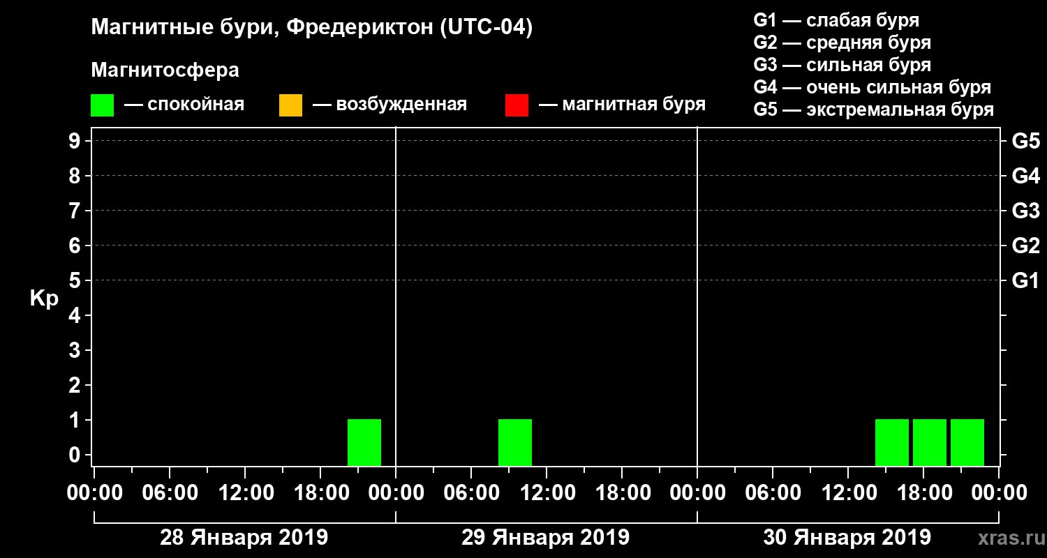 Магнитные бури в Фредериктоне 30 января 2019 года