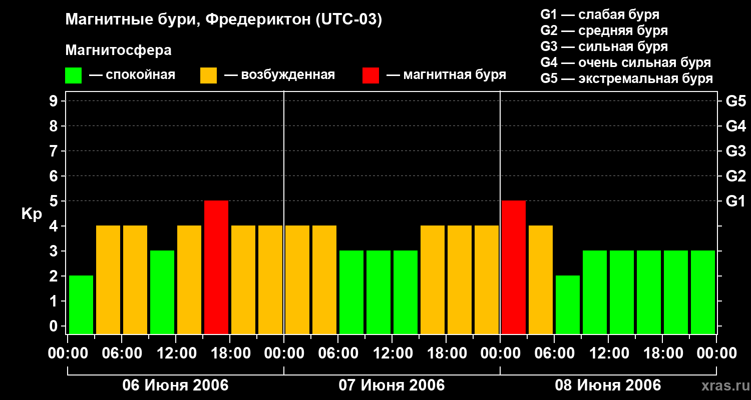 Магнитные бури в Фредериктоне 8 июня 2006 года