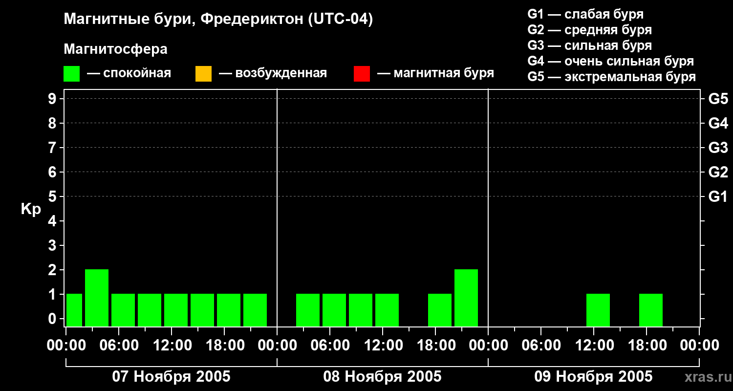 Магнитные бури в Фредериктоне 9 ноября 2005 года