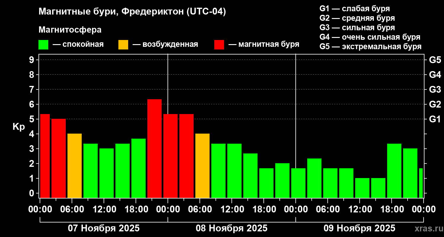Магнитные бури в Фредериктоне 9 ноября 2025 года