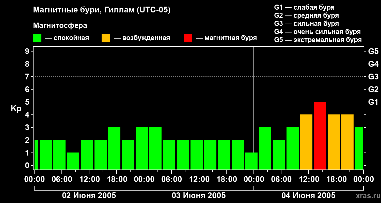 Магнитные бури в Гилламе — 4 июня 2005 года