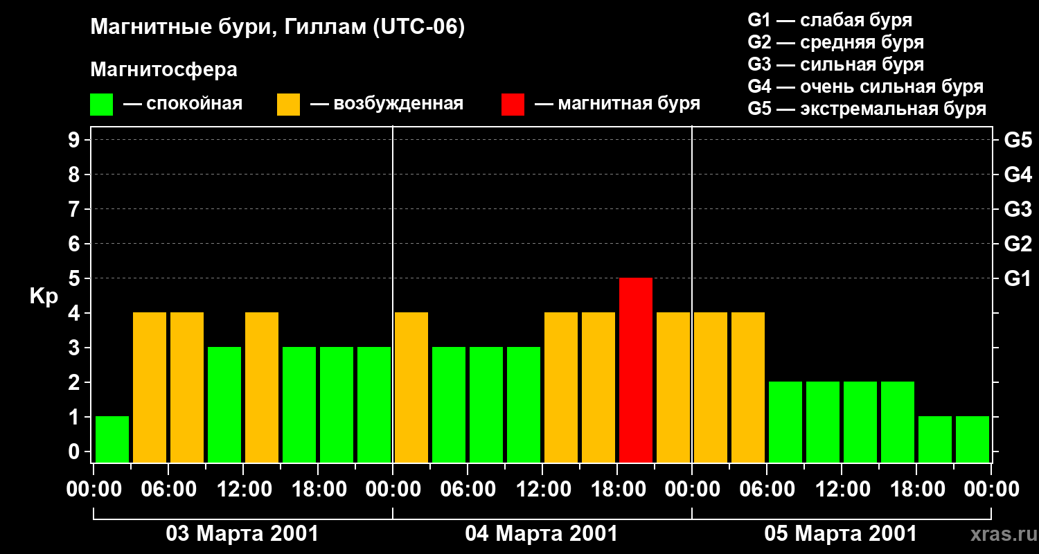 Магнитные бури в Гилламе — 5 марта 2001 года