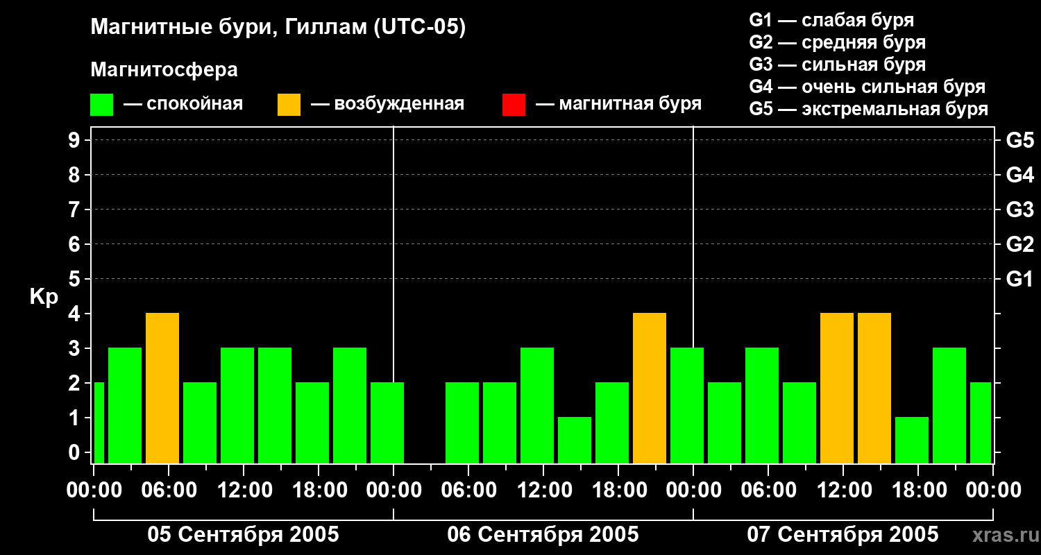 Магнитные бури в Гилламе 7 сентября 2005 года
