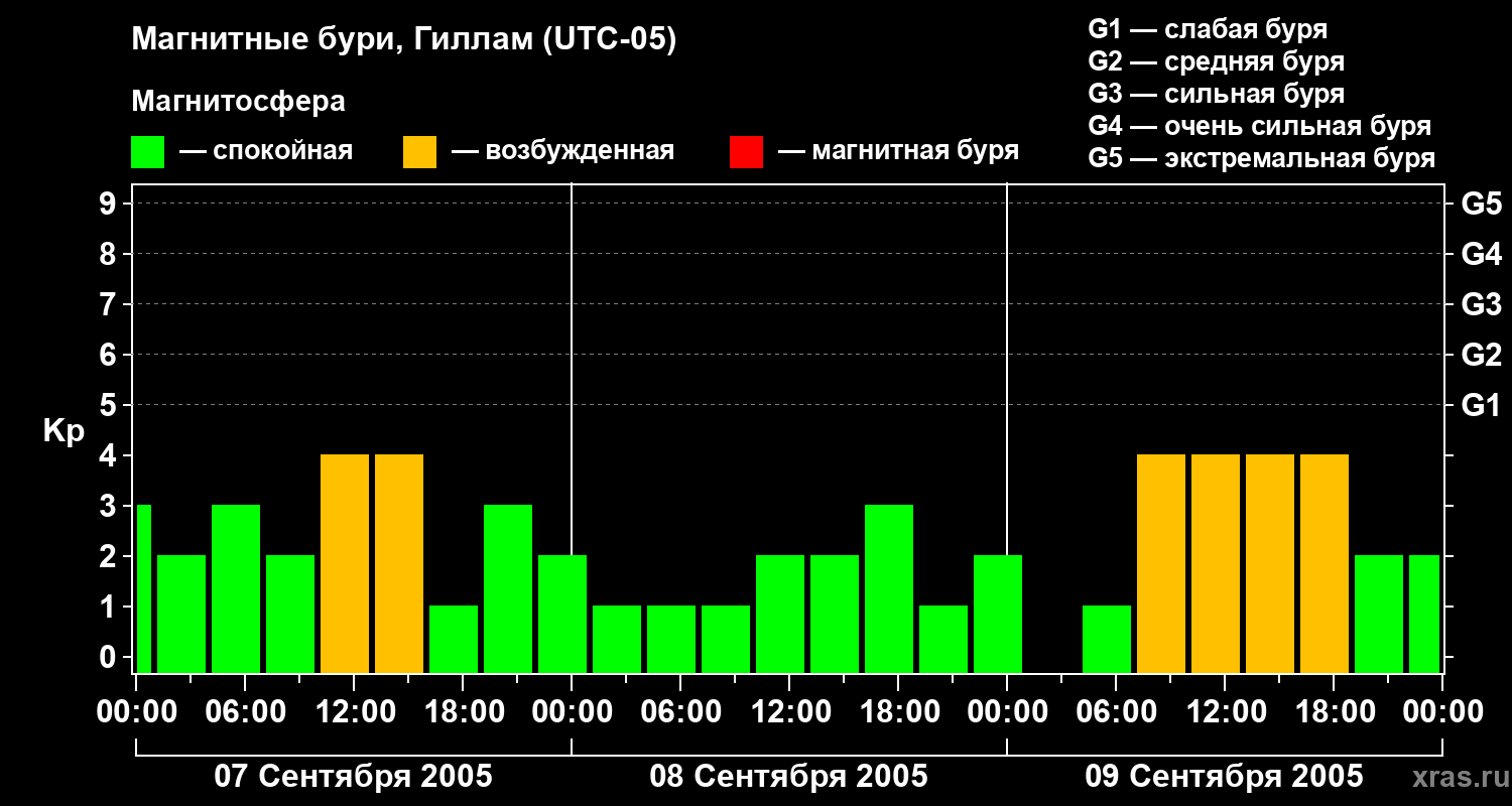 Магнитные бури в Гилламе 9 сентября 2005 года