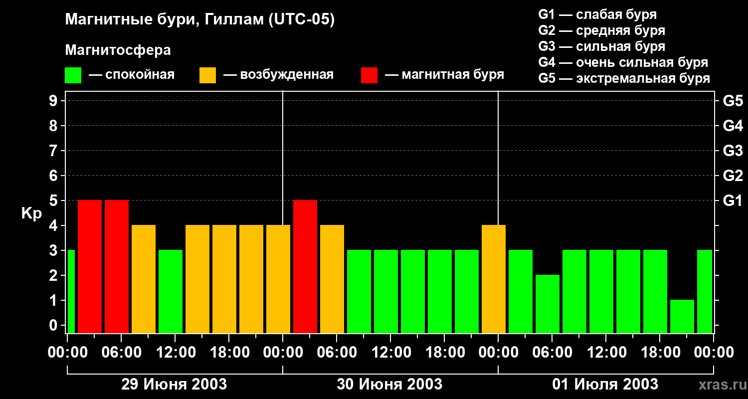 Магнитные бури в Гилламе — 1 июля 2003 года