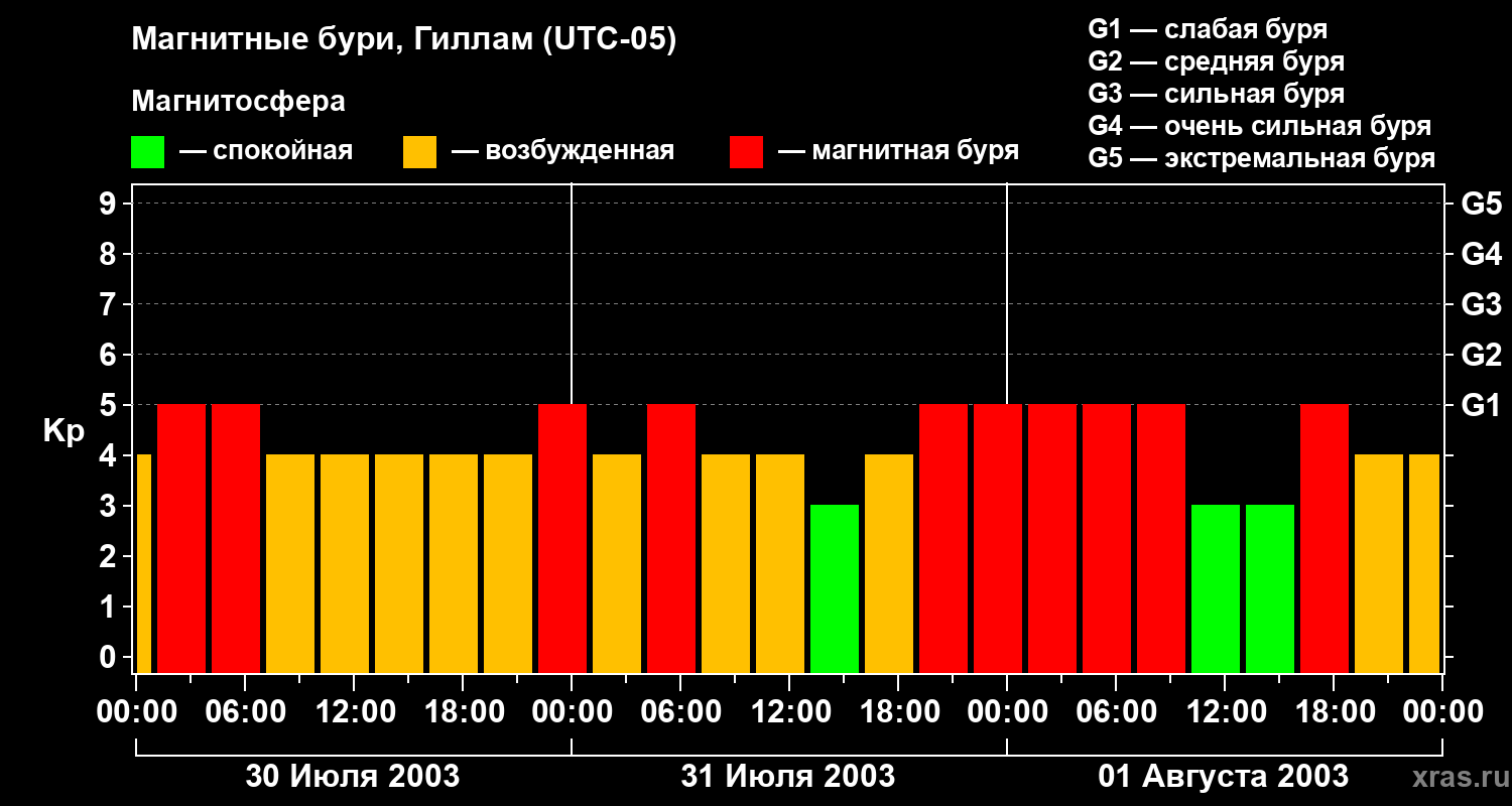 Магнитные бури в Гилламе — 1 августа 2003 года