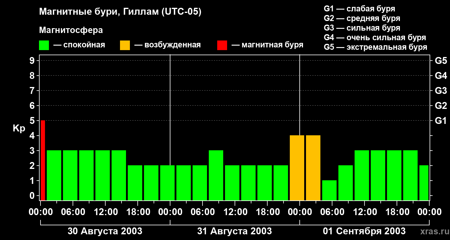 Магнитные бури в Гилламе — 1 сентября 2003 года