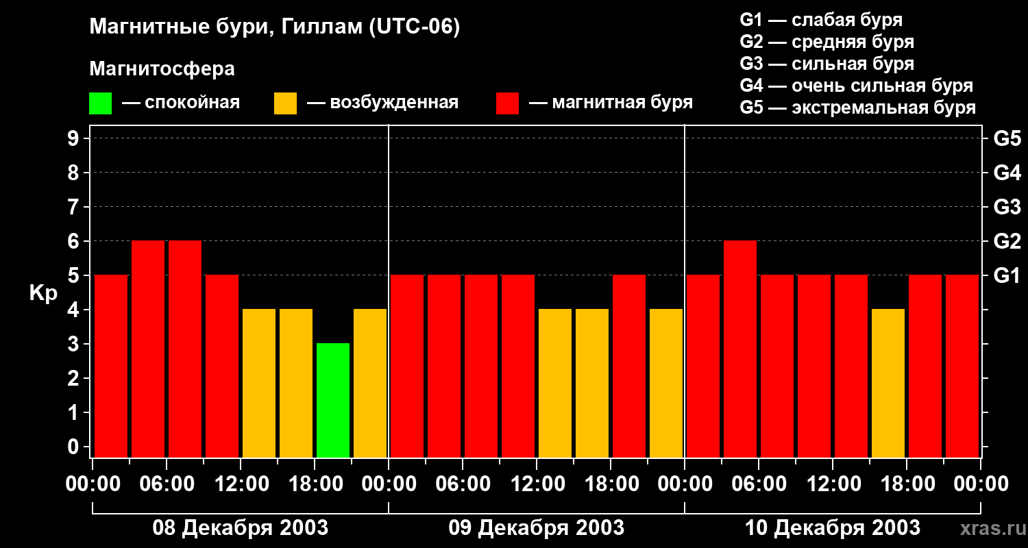Магнитные бури в Гилламе — 10 декабря 2003 года