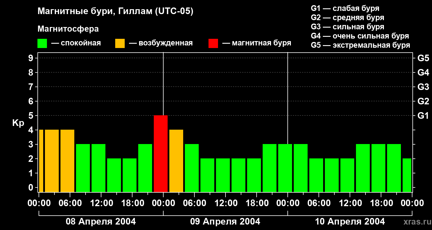 Магнитные бури в Гилламе — 10 апреля 2004 года