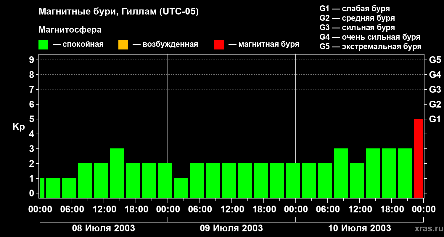 Магнитные бури в Гилламе — 10 июля 2003 года