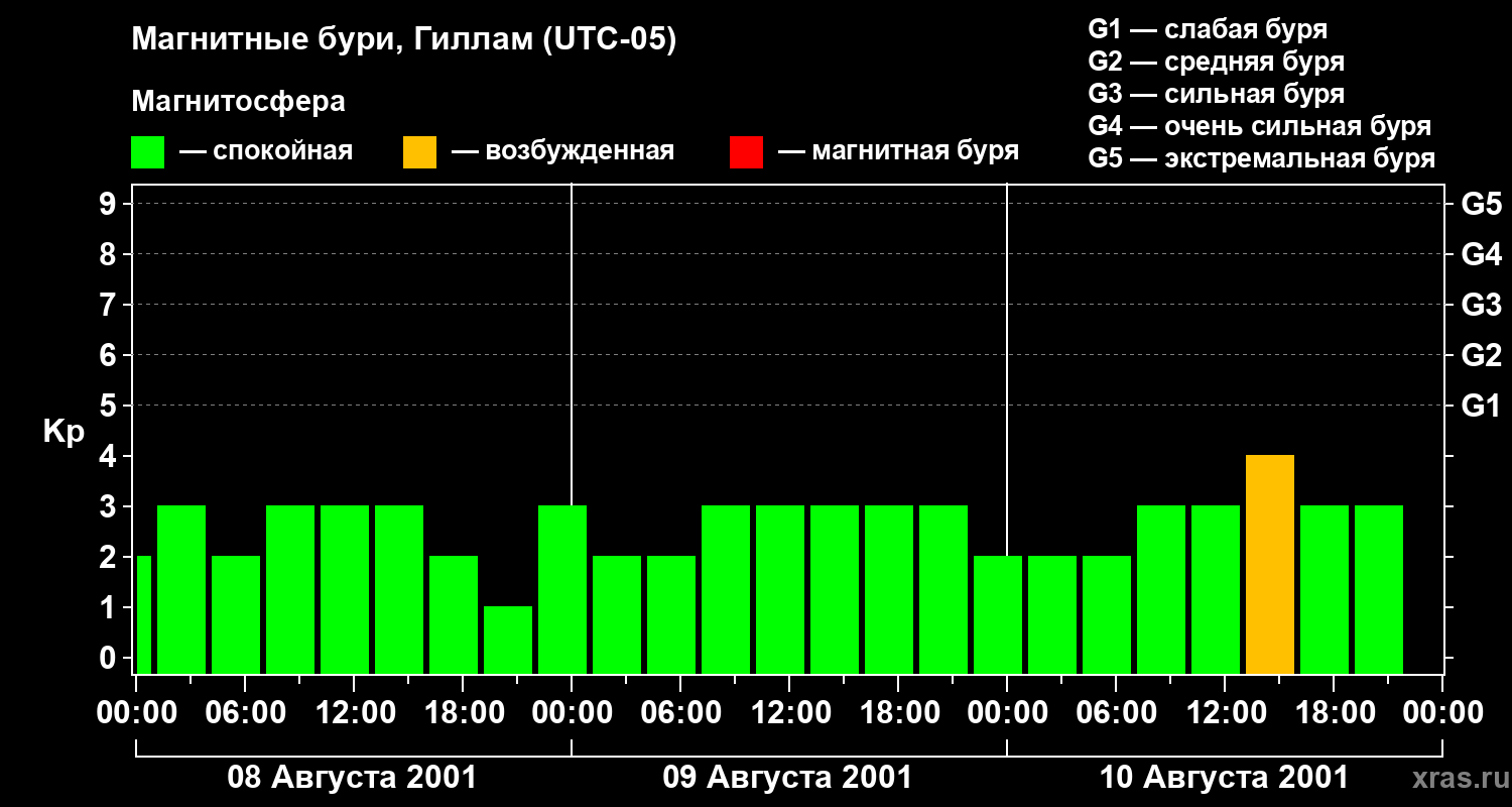 Магнитные бури в Гилламе — 10 августа 2001 года