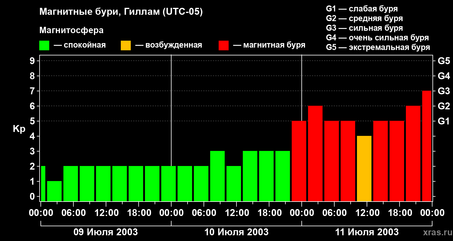 Магнитные бури в Гилламе — 11 июля 2003 года
