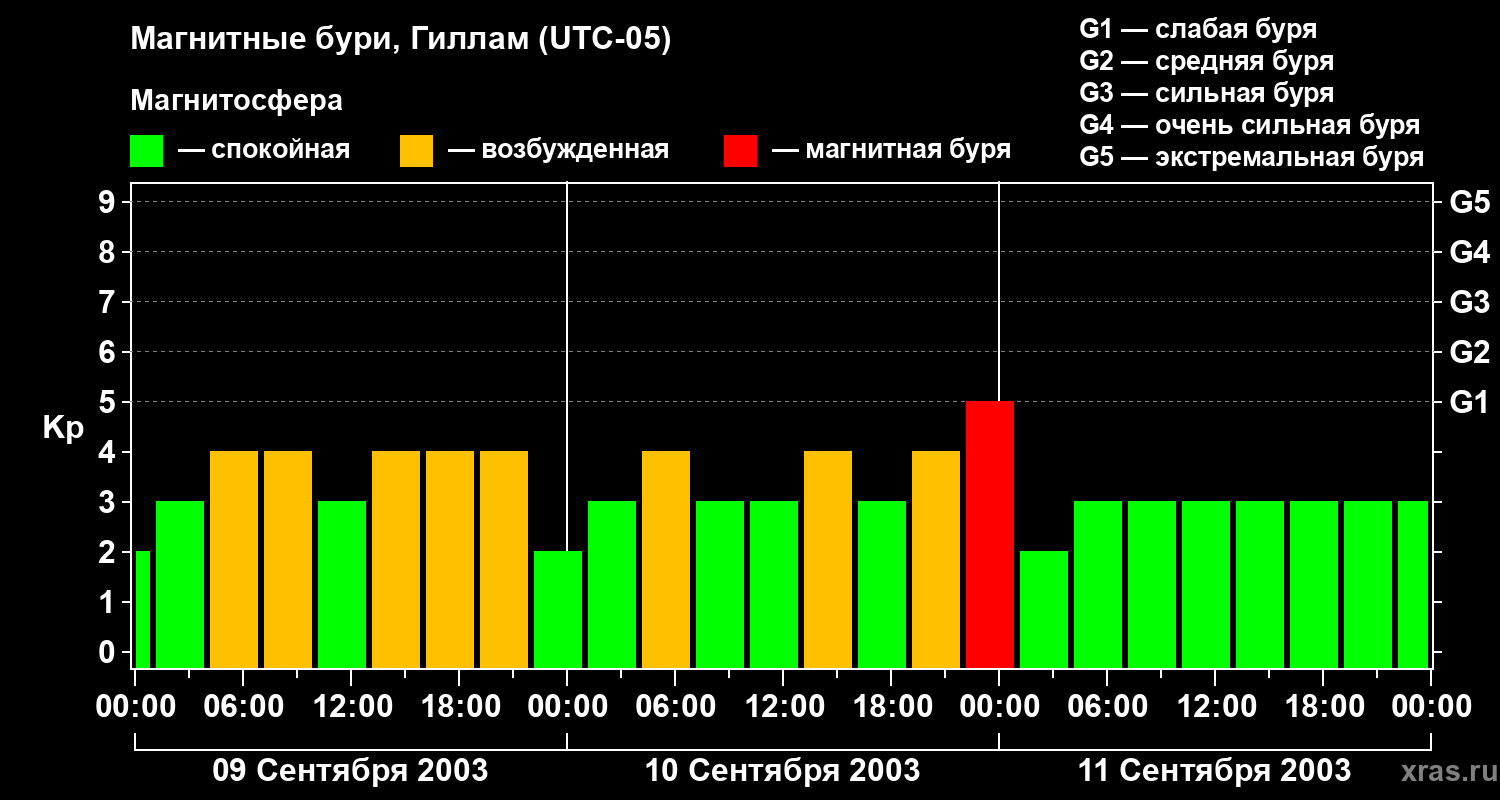 Магнитные бури в Гилламе — 11 сентября 2003 года