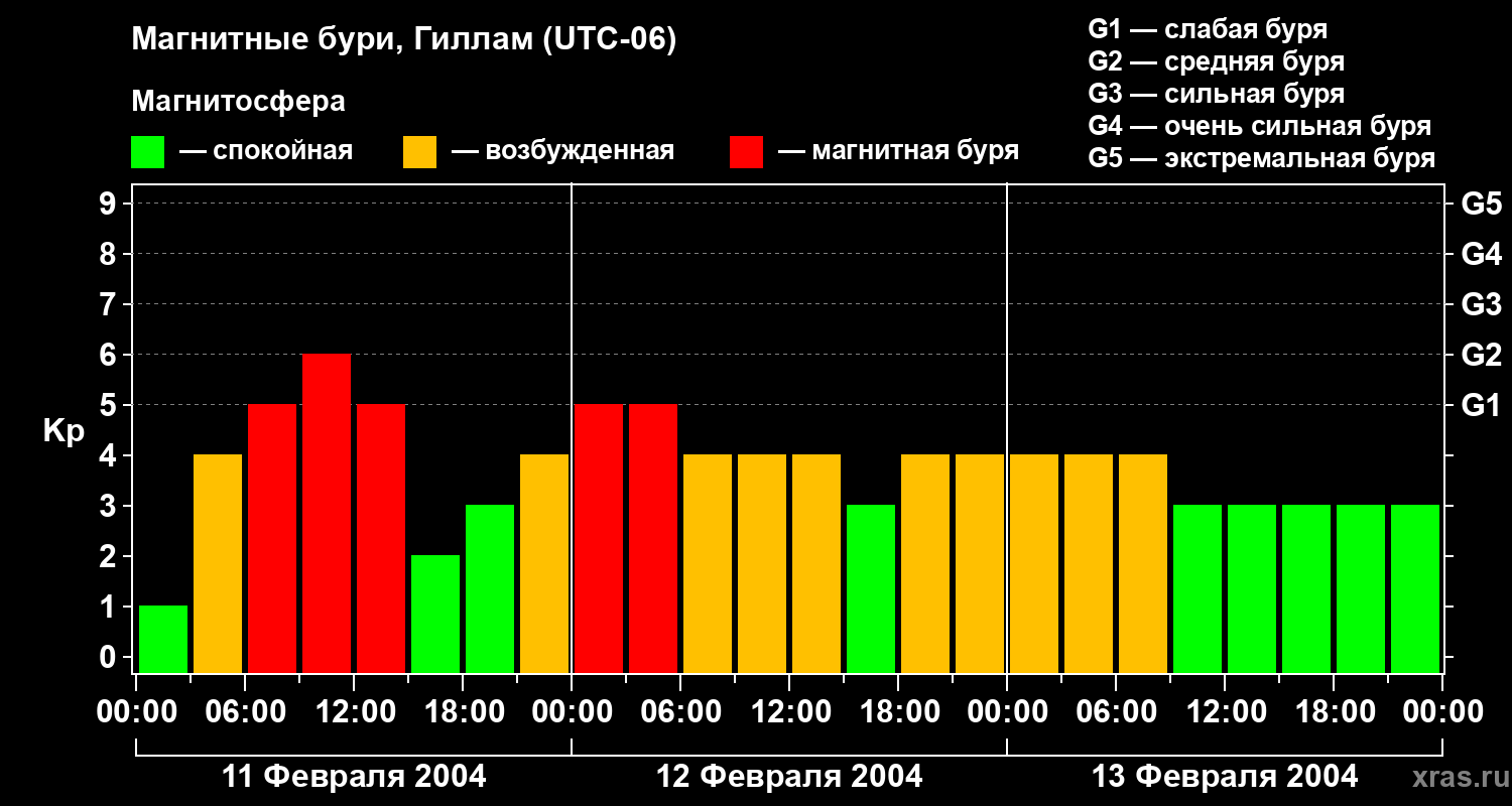 Магнитные бури в Гилламе — 13 февраля 2004 года