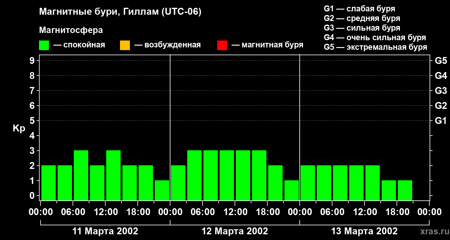 Магнитные бури в Гилламе — 13 марта 2002 года