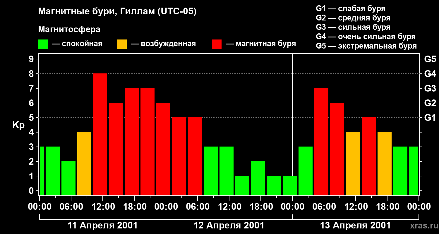 Магнитные бури в Гилламе — 13 апреля 2001 года