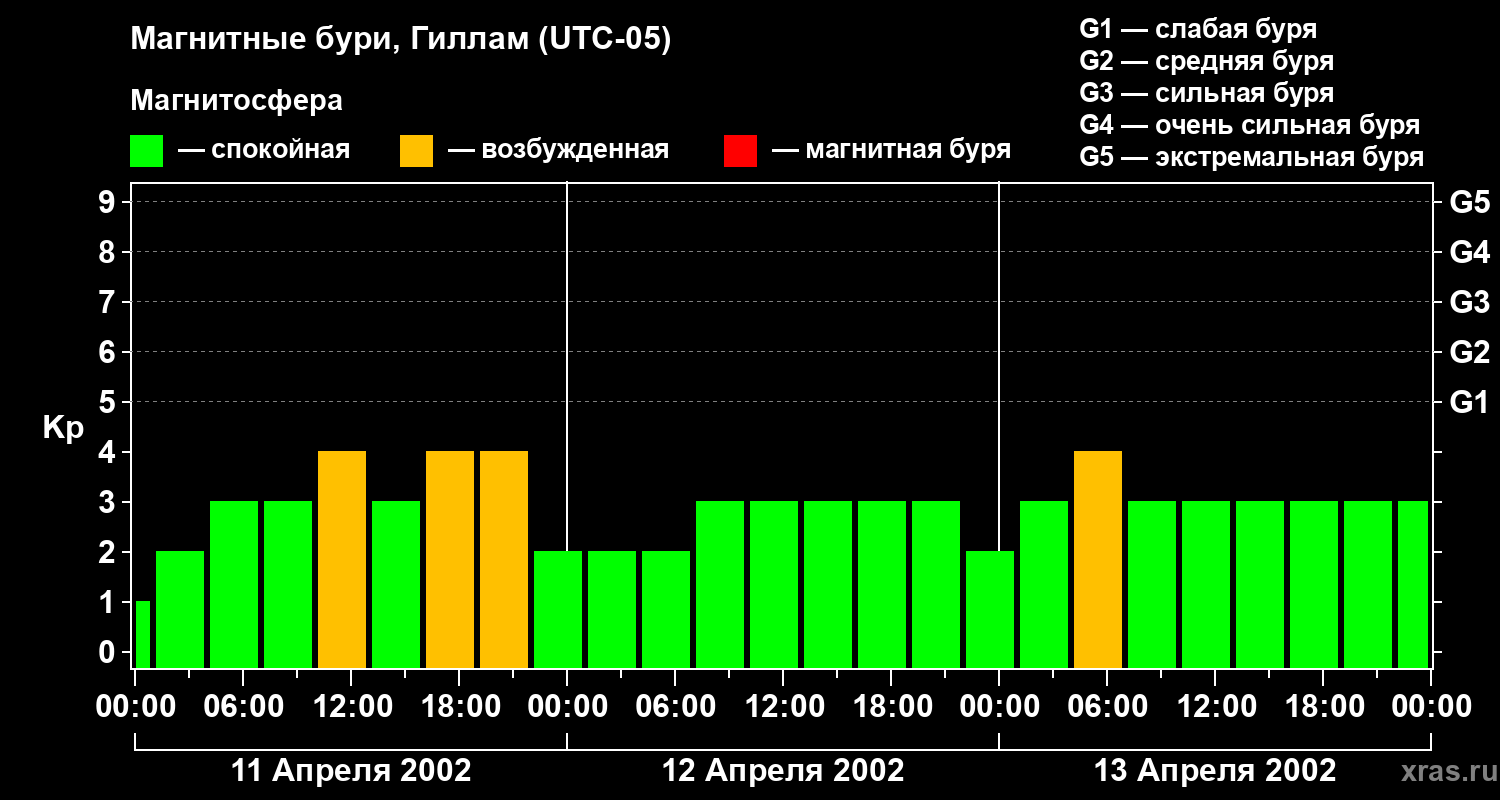 Магнитные бури в Гилламе 13 апреля 2002 года