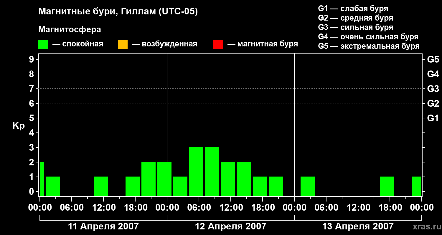 Магнитные бури в Гилламе 13 апреля 2007 года